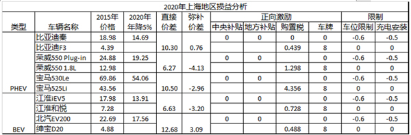 我們做以下的分析,如果假定在未來的五年內(nèi),車輛的成本年降5%,把價(jià)格壓下去,補(bǔ)貼取消,購(gòu)置稅保留,車牌保留,車位限制(20萬×3%的損益)和充電安裝計(jì)入(5千記錄)。