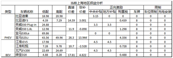 看數(shù)字可能更直觀一些,我們把目前市面上的車型價(jià)格和補(bǔ)貼標(biāo)準(zhǔn)給羅列一下,從初始購(gòu)買成本這個(gè)角度來看問題,當(dāng)前的情況如圖2。