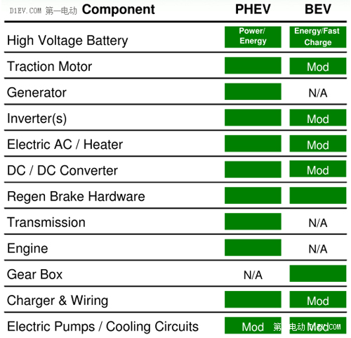 圖1 插電式車輛的部件情況