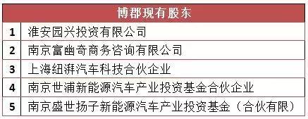 據(jù)南京日?qǐng)?bào)報(bào)道,2016年12月22日,由中科招商投資管理集團(tuán)股份有限公司與浦口經(jīng)濟(jì)開(kāi)發(fā)區(qū)共同發(fā)起、總規(guī)模達(dá)50億元人民幣的南京浦口新能源汽車(chē)產(chǎn)業(yè)基金揭牌。中科招商是博郡汽車(chē)最早投資者,和南京浦口對(duì)接之后,雙方一起孵化博郡。該基金即投資博郡汽車(chē)。從2017年底的工商信息看,南京世浦新能源汽車(chē)產(chǎn)業(yè)投資基金合伙企業(yè)占有34.29%的股份。