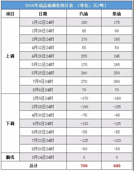 8月20日24時(shí),國內(nèi)汽、柴油價(jià)格(標(biāo)準(zhǔn)品)每噸均降低50元。這點(diǎn)降幅與此前上漲的幅度相比少得可憐,油價(jià)仍然是漲多跌少。截至目前,2018年國內(nèi)成品油調(diào)價(jià)“九漲六跌一擱淺”,汽油價(jià)格累計(jì)漲幅為700元/噸,柴油價(jià)格漲幅680元/噸。
