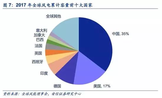 我國(guó)風(fēng)電裝機(jī)累計(jì)容量世界第一,風(fēng)電已成為繼煤電、水電之后的第三大電源。“十二五”期間,我國(guó)風(fēng)電新增裝機(jī)容量連續(xù)五年領(lǐng)跑全球,累計(jì)新增9800萬千瓦,占同期全國(guó)新增裝機(jī)總量的18%,在電源結(jié)構(gòu)中的比重逐年提高。到2017年年底,我國(guó)風(fēng)電累計(jì)并網(wǎng)容量達(dá)到1.88億千瓦,占據(jù)全球風(fēng)電累計(jì)裝機(jī)量的35%。