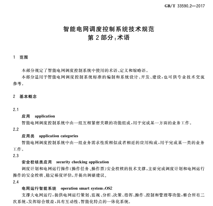 國(guó)家標(biāo)準(zhǔn)《智能電網(wǎng)調(diào)度控制系統(tǒng)技術(shù)規(guī)范第二部分:術(shù)語(yǔ)》已發(fā)布并實(shí)施