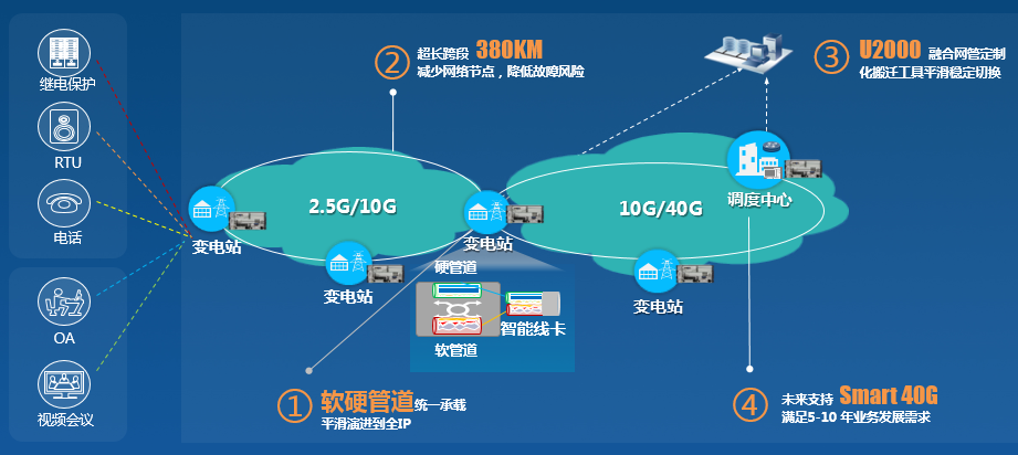 作為東南亞最重要的電力企業(yè)之一,PEA一直在探索先進(jìn)ICT技術(shù)在智能電網(wǎng)的運(yùn)用。其中輸變電傳輸網(wǎng)絡(luò)作為智能電網(wǎng)的骨干網(wǎng)架,PEA對其演進(jìn)方向的選擇和關(guān)鍵技術(shù)的選用一直作為最重要的課題之一?;趯蛻羯羁痰睦斫?,華為自2014年開始和PEA探討網(wǎng)絡(luò)改造方案,由于現(xiàn)網(wǎng)中存在大量的關(guān)鍵生產(chǎn)業(yè)務(wù)和PCM業(yè)務(wù),新建網(wǎng)絡(luò)必須能夠?qū)崿F(xiàn)老網(wǎng)絡(luò)業(yè)務(wù)的平滑切換,保證業(yè)務(wù)質(zhì)量和安全性。不僅如此,由于智能電網(wǎng)的快速發(fā)展,PEA不斷上線新的業(yè)務(wù),建成后的網(wǎng)絡(luò)也要具備靈活接入和帶寬擴(kuò)容的能力。