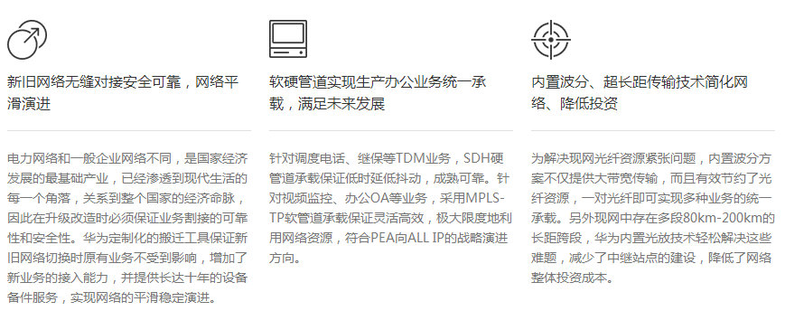 華為為PEA定制的融合傳送輸變電解決方案,支持內(nèi)置PCM、Smart 40G等創(chuàng)新技術(shù),統(tǒng)一承載生產(chǎn)和辦公業(yè)務(wù),能夠支持未來電力業(yè)務(wù)ALL IP發(fā)展的需要,而且保障重要業(yè)務(wù)的高可靠傳輸。一些獨(dú)特的技術(shù)如內(nèi)置波分、超長距傳輸?shù)群喕司W(wǎng)絡(luò),降低了整網(wǎng)投資。同時,華為可提供10年的產(chǎn)品備件服務(wù),專業(yè)技術(shù)團(tuán)隊(duì)負(fù)責(zé)整網(wǎng)梳理規(guī)劃,保障現(xiàn)網(wǎng)穩(wěn)定運(yùn)行安全無憂。另外,超大帶寬和靈活的擴(kuò)展性可以滿足未來三到五年的發(fā)展。通過采用華為的融合傳送解決方案,PEA有了更加穩(wěn)定的網(wǎng)絡(luò)架構(gòu),在全球輸變電網(wǎng)絡(luò)升級換代浪潮中搶占了技術(shù)制高點(diǎn),對全球電力行業(yè)客戶的輸變電網(wǎng)絡(luò)建設(shè)均具備重要的示范意義。