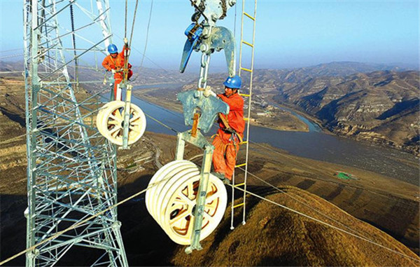 2016年7月,榆橫—濰坊1000千伏特高壓交流輸變電工程在橫山縣塔灣鎮(zhèn)成功進(jìn)行首場(chǎng)張力放線作業(yè),標(biāo)志著“陜電外送”首個(gè)特高壓工程進(jìn)入全面提速建設(shè)的新階段。11月,該工程在陜西省清澗縣與山西省石樓縣之間成功跨越黃河。