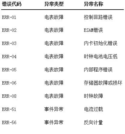 首先為大家奉上常見(jiàn)的電表異常類(lèi)型和報(bào)警方式: