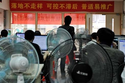 8.時值冬日,廣州的室外溫度不足10℃,資產(chǎn)管理項目部里卻開起了電風扇,室內(nèi)悶熱,又沒有空調(diào),現(xiàn)場一位工作人員起身準備脫去外套,他告訴記者,“去年夏天,100多號人在這個房間就靠著這十幾把風扇熬了過來。”