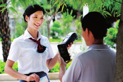 廣西電網(wǎng)南寧邕寧供電公司通過95598信息平臺,把服務(wù)信息發(fā)到客戶的手機(jī)上??蛻糁恍柚讣廨p點(diǎn),就對服務(wù)信息一目了然。馬華斌 攝客戶體驗(yàn)東莞供電局微服務(wù)。葉琳琳 攝在海南,客戶可掃二維碼交電費(fèi)。田丹妮 攝