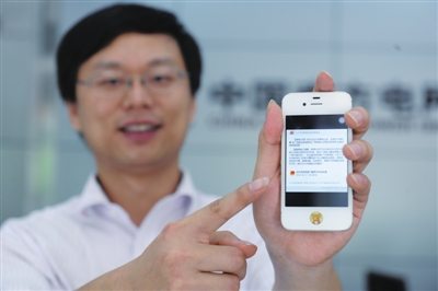廣西電網(wǎng)南寧邕寧供電公司通過95598信息平臺,把服務(wù)信息發(fā)到客戶的手機(jī)上??蛻糁恍柚讣廨p點(diǎn),就對服務(wù)信息一目了然。馬華斌 攝