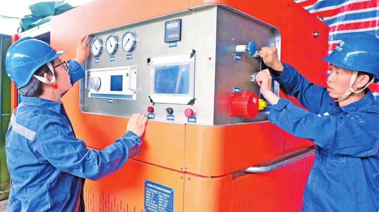 云南電網(wǎng)公司工作人員在對回收的六氟化硫氣體進(jìn)行凈化提純。歐陽婷婷 攝