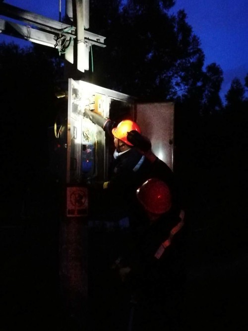 受16號臺風“貝碧嘉”環(huán)流影響,8月14日傍晚,雷雨大風襲擊鶴山,南方電網廣東江門鶴山供電局沙坪所值班人員在當晚19時接到樓沖村委會下秦村報障電話,秦村一帶電壓低,無法正常用電,值班員接到報障后,立馬組織人員趕赴現場。