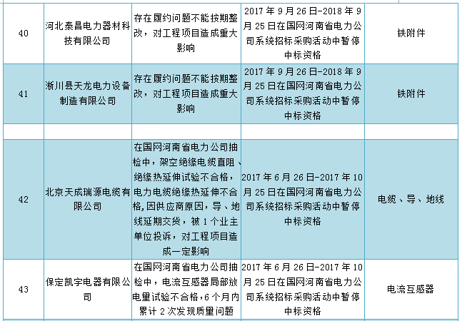 國(guó)網(wǎng)(河南)2017年第三批供應(yīng)商不良行為處置通報(bào)
