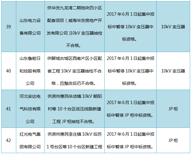 國(guó)網(wǎng)山東關(guān)于2017年第七批供應(yīng)商不良行為處理情況的公示(2017年10月)