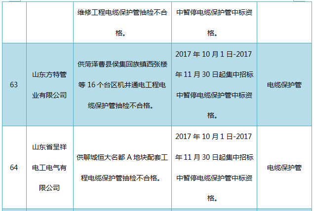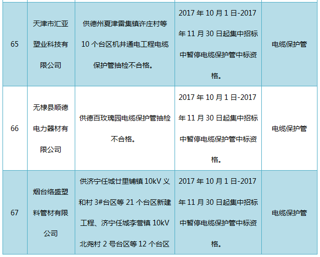 國網山東關于2017年第七批供應商不良行為處理情況的公示(2017年10月)