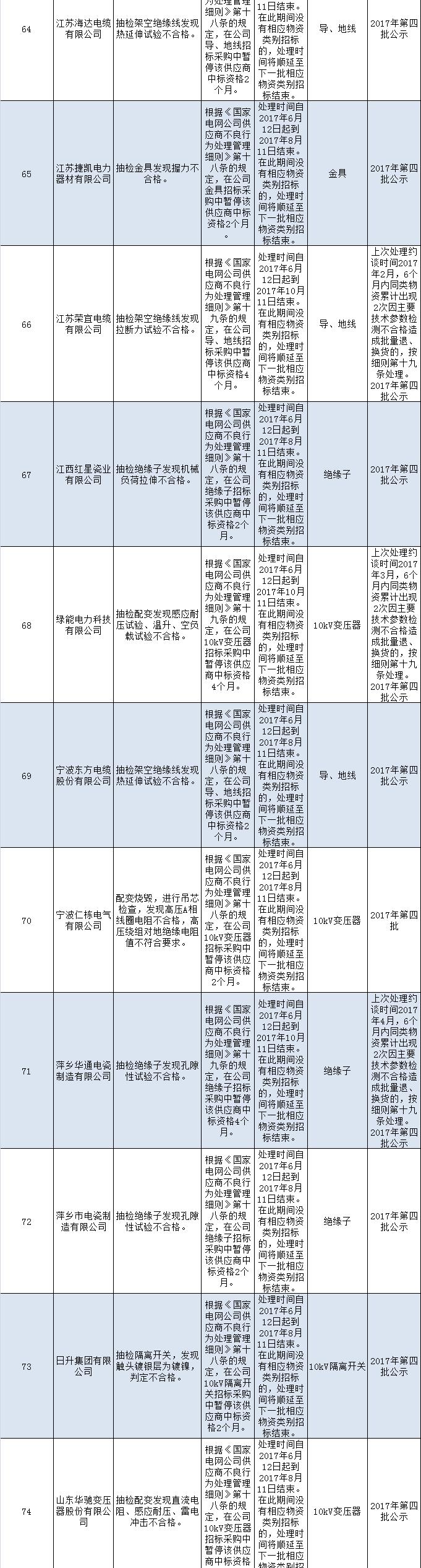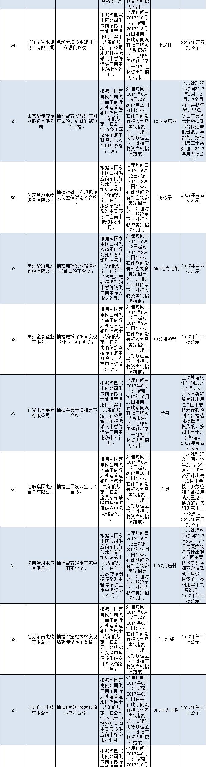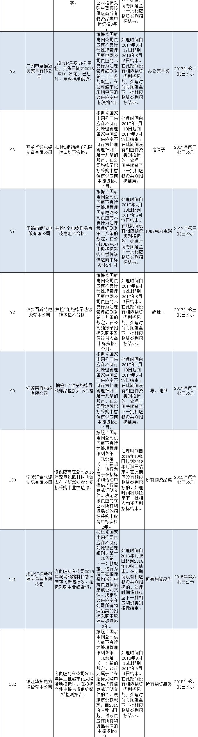 國網(浙江)2017年第七批供應商不良行為處理結果