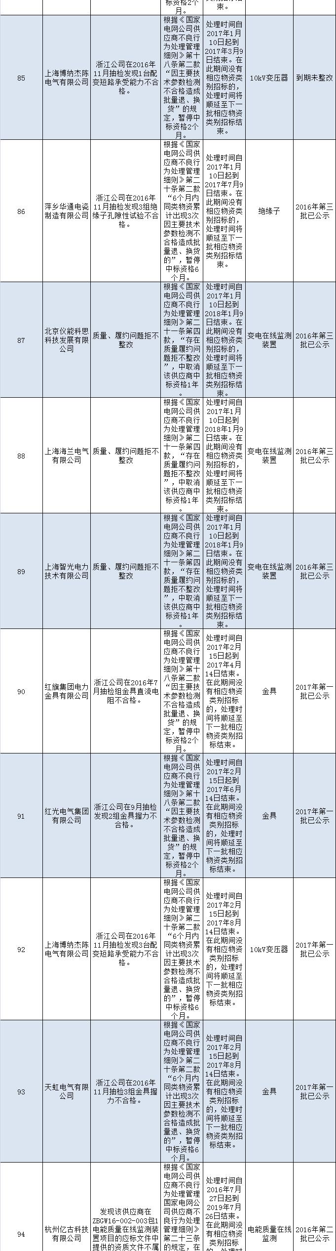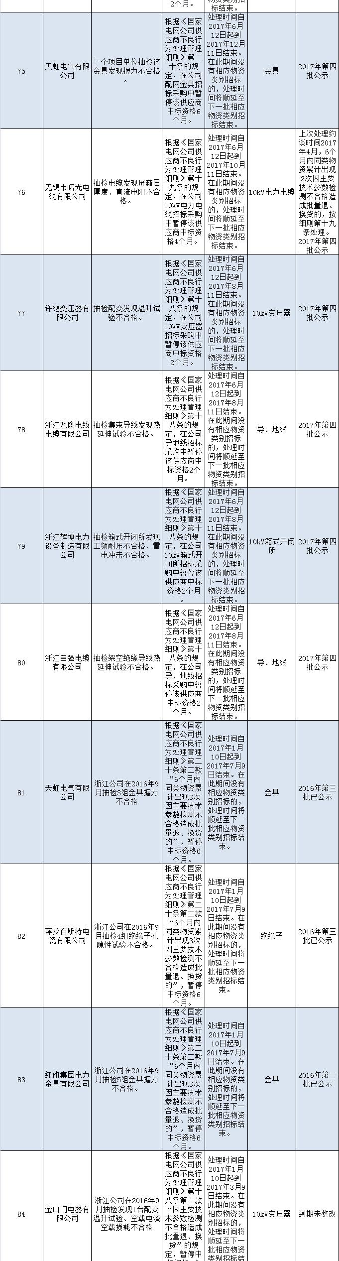 浙江省電力公司2017年第七批供應商不良行為處理結果公告