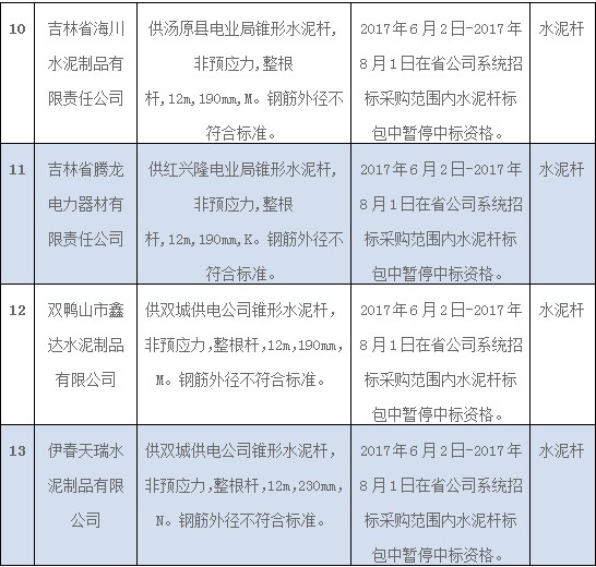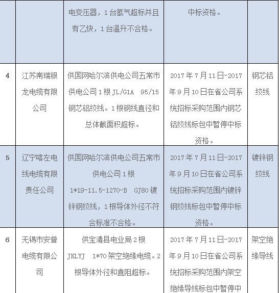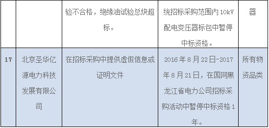 國(guó)網(wǎng)(黑龍江)通報(bào)供應(yīng)商不良行為處理情況(2017年7月)