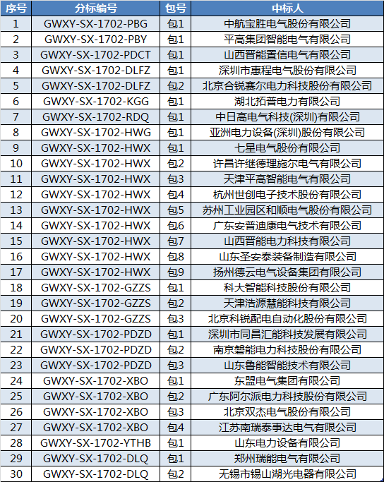 國家電網(wǎng)公司山西省電力公司2017年第二次配網(wǎng)設(shè)備協(xié)議庫存貨物招標(biāo)活動(dòng)中標(biāo)結(jié)果公告