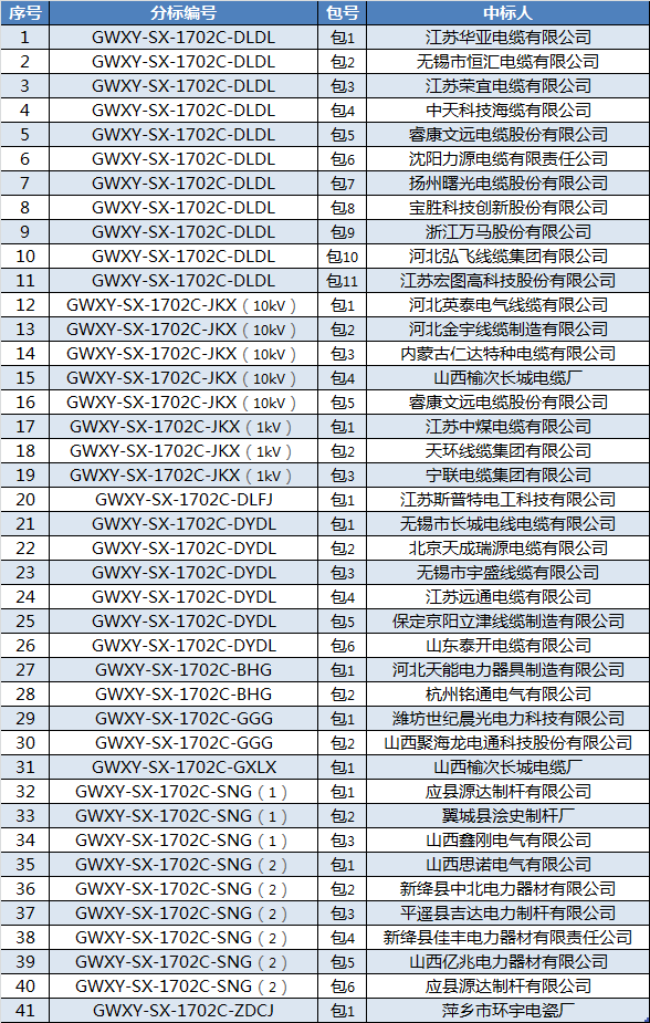 國網(wǎng)山西省電力公司2017年第二次配網(wǎng)線路材料協(xié)議庫存招標(biāo)采購活動(dòng)中標(biāo)結(jié)果公告