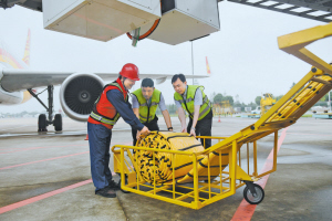 蕭山區(qū)供電公司員工在杭州蕭山國際機場檢查橋載設(shè)備。  徐國鋒 攝