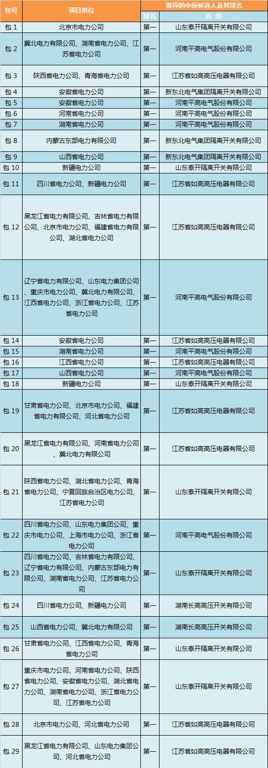 2017年國(guó)網(wǎng)第六次變電設(shè)備—隔離開(kāi)關(guān)中標(biāo)侯選人名單