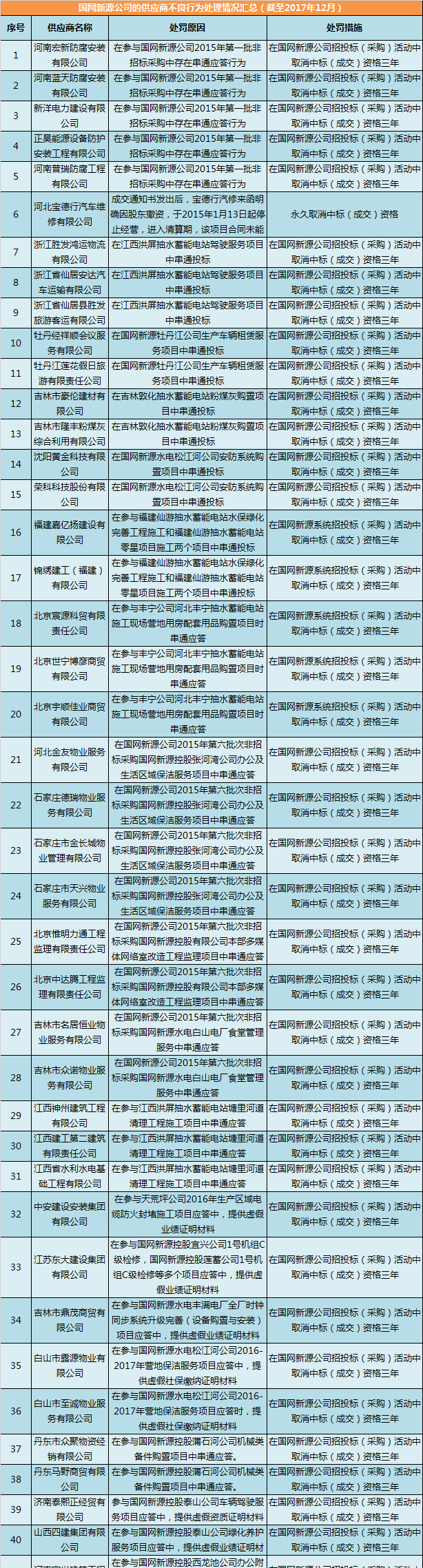 國網(wǎng)新源公司關(guān)于供應(yīng)商不良行為處理通報(2017年12月)