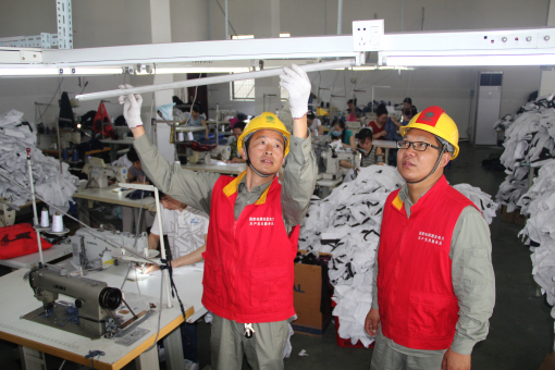 湖北谷城縣供電公司石花供電所員工為仟裳服飾有限公司更換燈管。馬明剛 攝