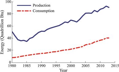圖3  中東能源生產(chǎn)和消費(fèi)