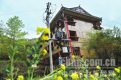 3月28日,貴州臺(tái)江供電局施工人員在南宮鎮(zhèn)交宮村更換變壓器。2017年以來,該局加大電力扶貧工作力度,總投入農(nóng)網(wǎng)升級(jí)改造、中心村電網(wǎng)建設(shè)